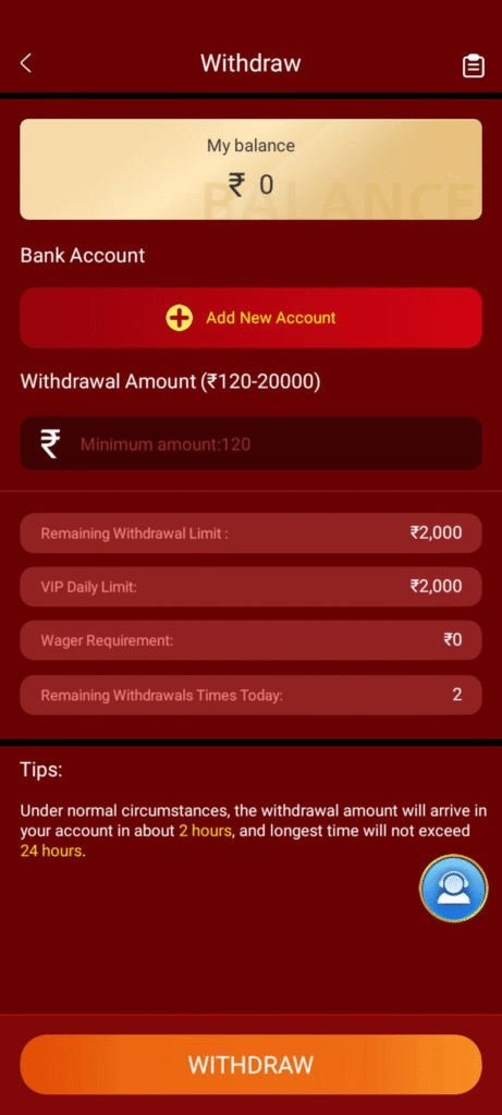 मेरे दोस्तों अगर आप इस एप्लीकेशन से पैसा WITHDRAWAL करना चाहते हैं तो सबसे pahle एप्लीकेशन को ओपन करें और WITHDRAWAL ऑप्शन पर क्लिक करें और वहां पर अपना बैंक अकाउंट इनफार्मेशन इस एप्लीकेशन से निकलना है उतना अमाउंट भर दे उसके बाद कंफर्म कर देफिर दोस्तों आपका खाता में जॉइंट हो जाएगाअगर किसी कारणवश दिक्कत आता है तो आप कस्टमर कोड से बात कर सकते हैं !